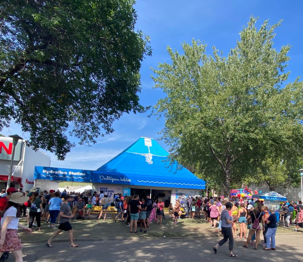Michael decided to head home for a short fair break before returning later with Kathleen. Elysia and I kept wandering. We wanted to quickly fill our water bottles at Culligan, but found lines almost out into the street!
