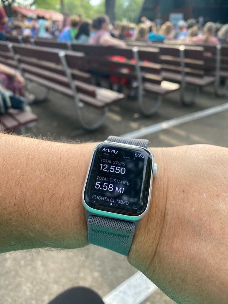 With drinks in hand, I walked back up to the bandshell. I sat waiting for the talent show to begin and checked my Apple Watch.