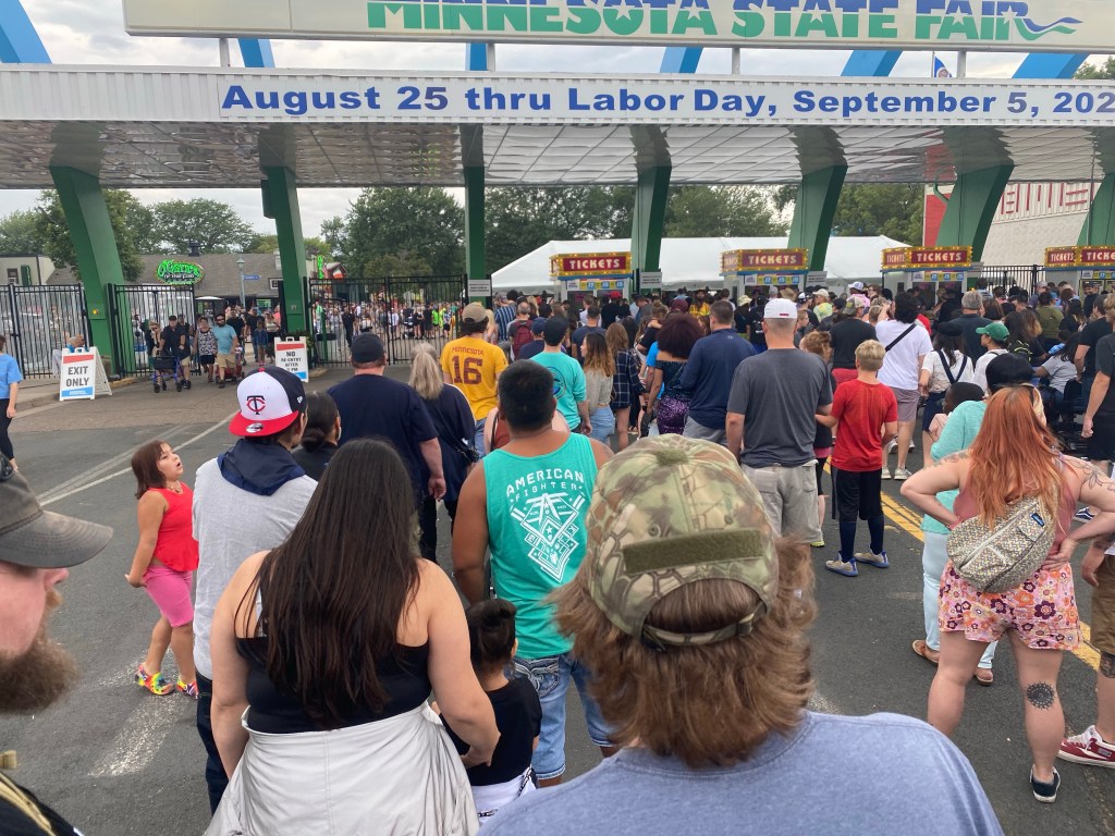 We listened to the band full of great entertainers but kept one eye on the sky. We were checking radar regularly and getting messages from home, but when the state fair blue shirts came to close up the sound booth that was our cue to get moving. Elysia had already left since she didn’t want to be waiting for a park & ride bus if everyone was evacuating.