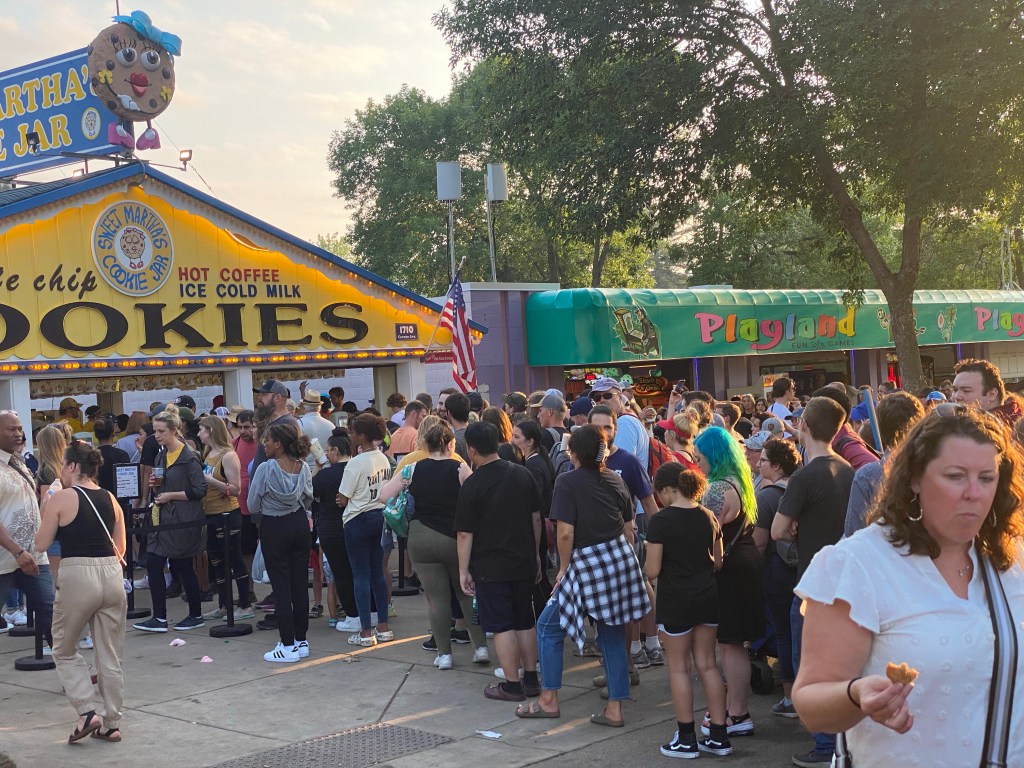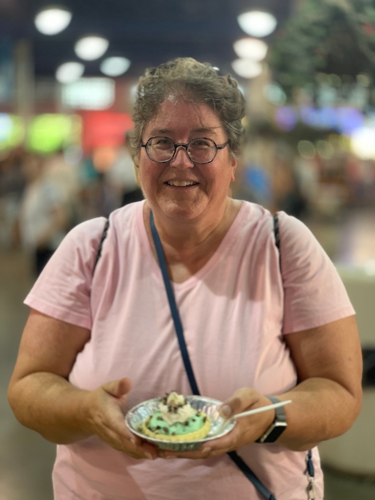 After my shift today, I was hot, sweaty, tired and smelled bad. I thought it was best for everyone if I went home! Despite the weather, it’s still a weekend day and the fair was busy, but I decided I would attempt a treat run anyway. Elysia was on the grounds with friends and texted me the north end Sweet Martha report…”it’s busy”.
