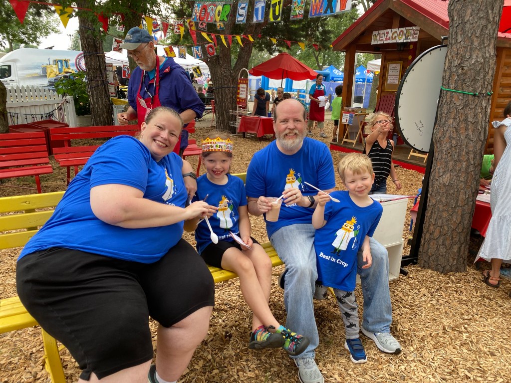 As I ate my pie, I learned about the confusion in the food building the previous night. The storm hit just as the building is supposed to be closing. Staff people were closing the big garage doors, as fairgoers were trying to seek shelter inside. I know the announcements at the Leinie Lodge instruct people to go the Food building or Ag/Hort. It’s lucky this storm wasn’t worse! Might be time to revisit the plan!