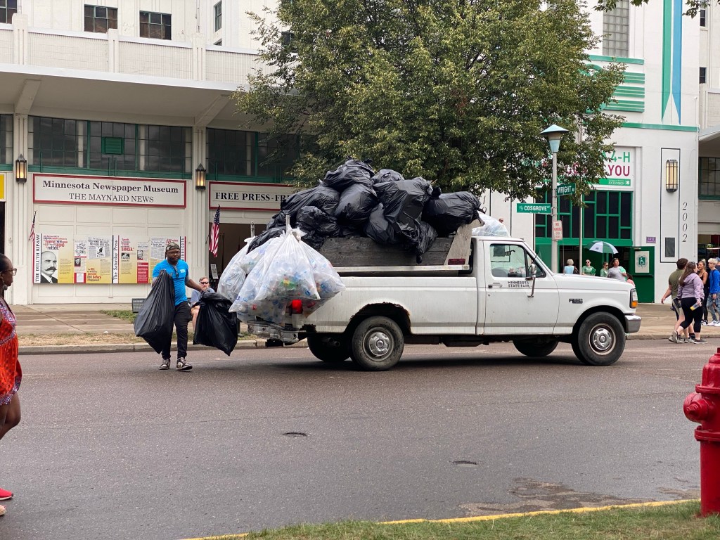 I walked out to the street to see this loaded truck. My first thought was the Grinch and his sled! I wondered, with all the staffing shortages predicted and realized this year, how the sanitation situation would be out here. So far, there are a lot of hard working people keeping our fair as clean as they can! I’m grateful and I say “Thank you” every chance I get.