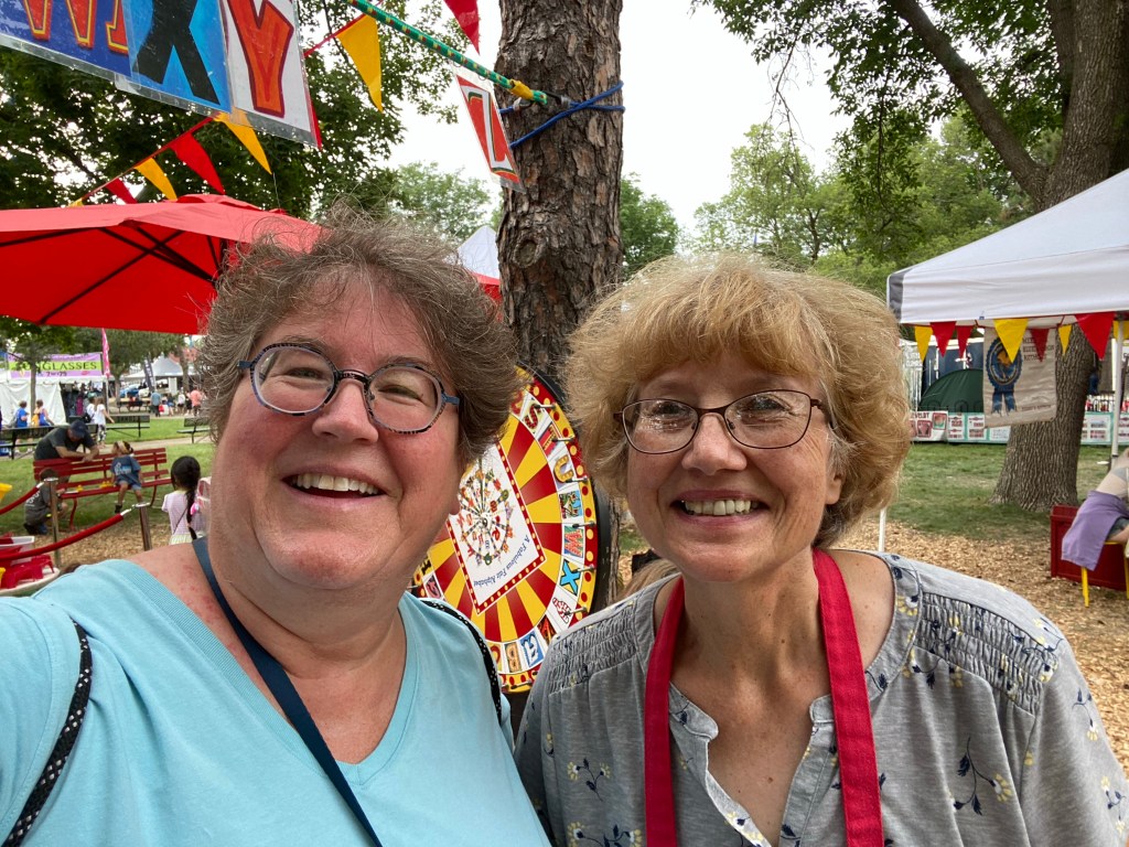 Today is oppressive, with more storms in the forecast, and 90% humidity. You can see I’m already drooping. My volunteer buddy and State Fair Co-junkie Bree, was volunteering at the crown box station and I was her replacement.
