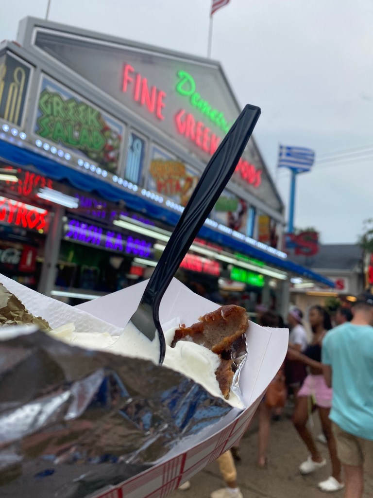 Elysia found me on the bench, after walking halfway to where she though I’d be, and back again. Mike & Kathleen messaged to say they were on the west end, so we connected in the middle at Demitri’s! Gyro for dinner.