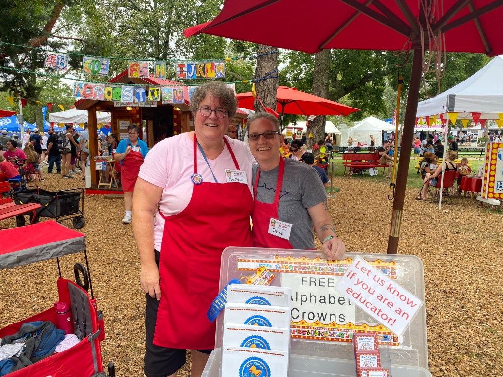 I made my way up the hill, donned my first red apron and took my post greeting people and welcoming them into the Alphabet Forest. When I was teaching full time, many of my families would come and find me here. I’m grateful for the ones who still come back and say hi and get hugs! Thanks Sloan Family💙
