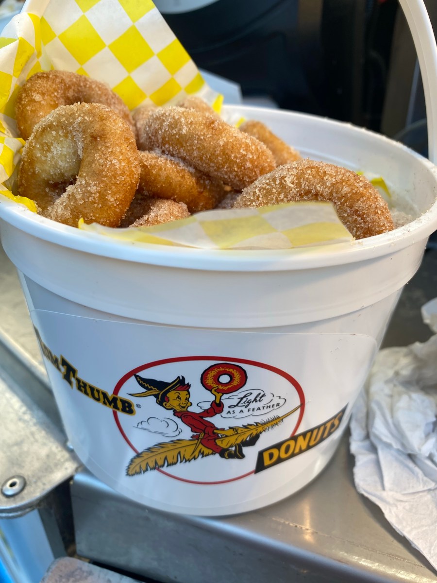I turned and saw the lines for donuts were much smaller so Randy would have to settle for a bucket of minis.