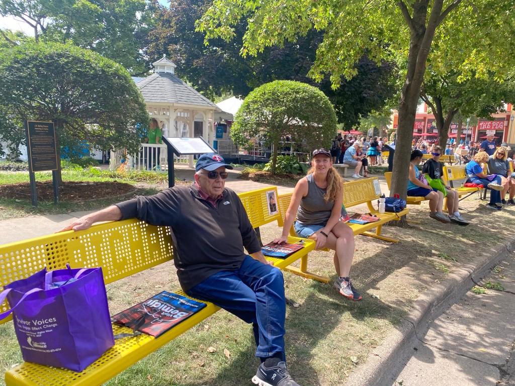 We moved from the shady, filthy table over to Bailey House benches to await more family and the parade. We left Glenn & Karla to save 22’ of bench space, while I took Steve & Marge on a shortcut mission to get Fresh French Fries!