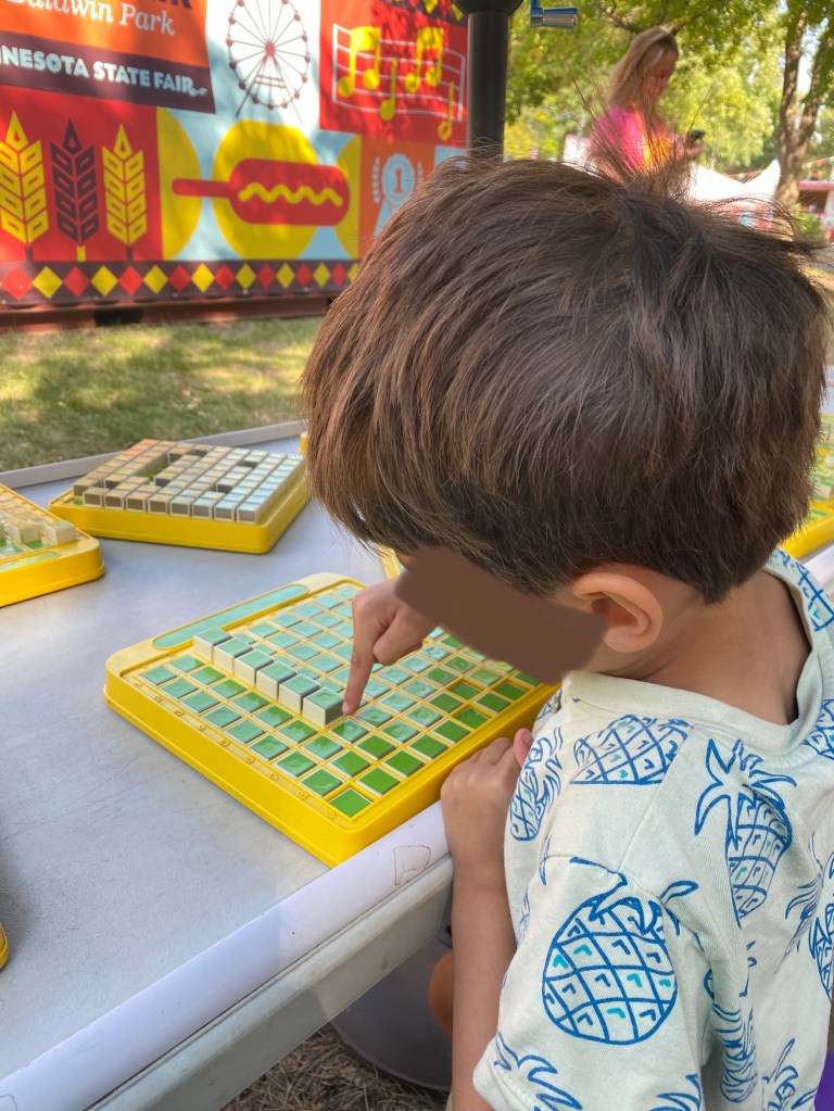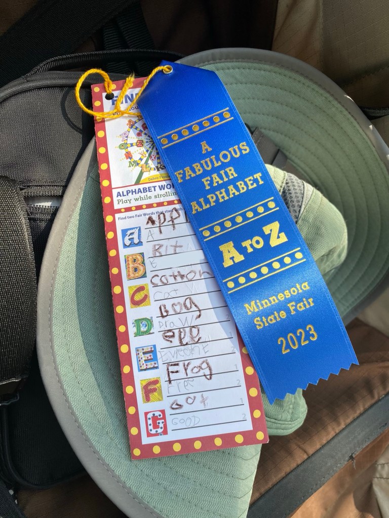 We took a quick detour around the Kidway to get a corn dog and returned to play in the Alphabet Forest.