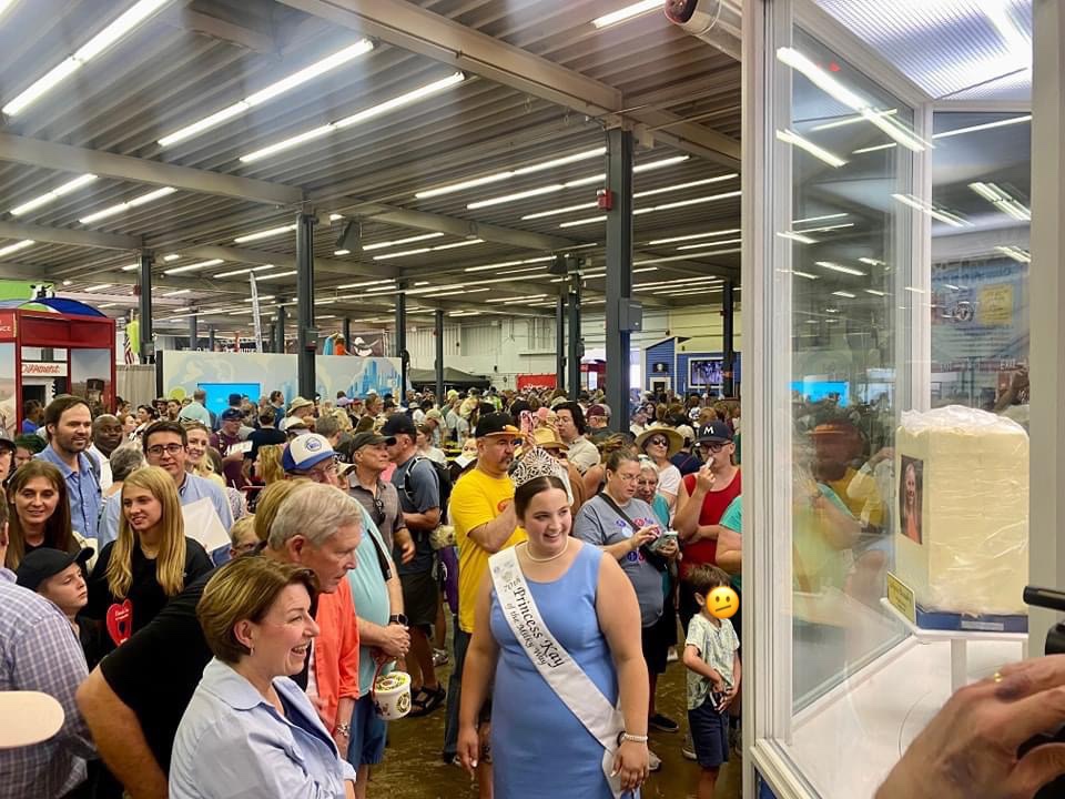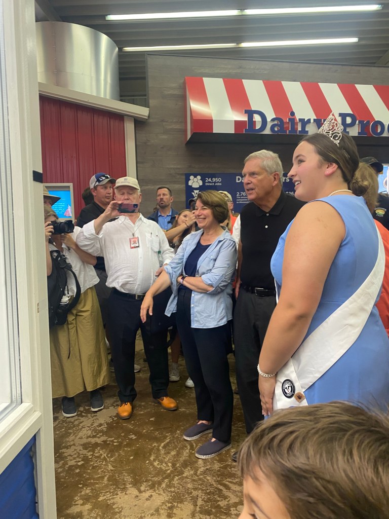 I tried to explain what a butterhead was, but based on the kids expression, I think seeing was believing. We headed to the Dairy Building to check it out. It was SO crowded for a Monday. As we snuck up to the front so B could see, I looked over to the right and realized why it was so busy! Senator Amy Klobachar, Senator Tina Smith and the Secretary of Agriculture were in the house!