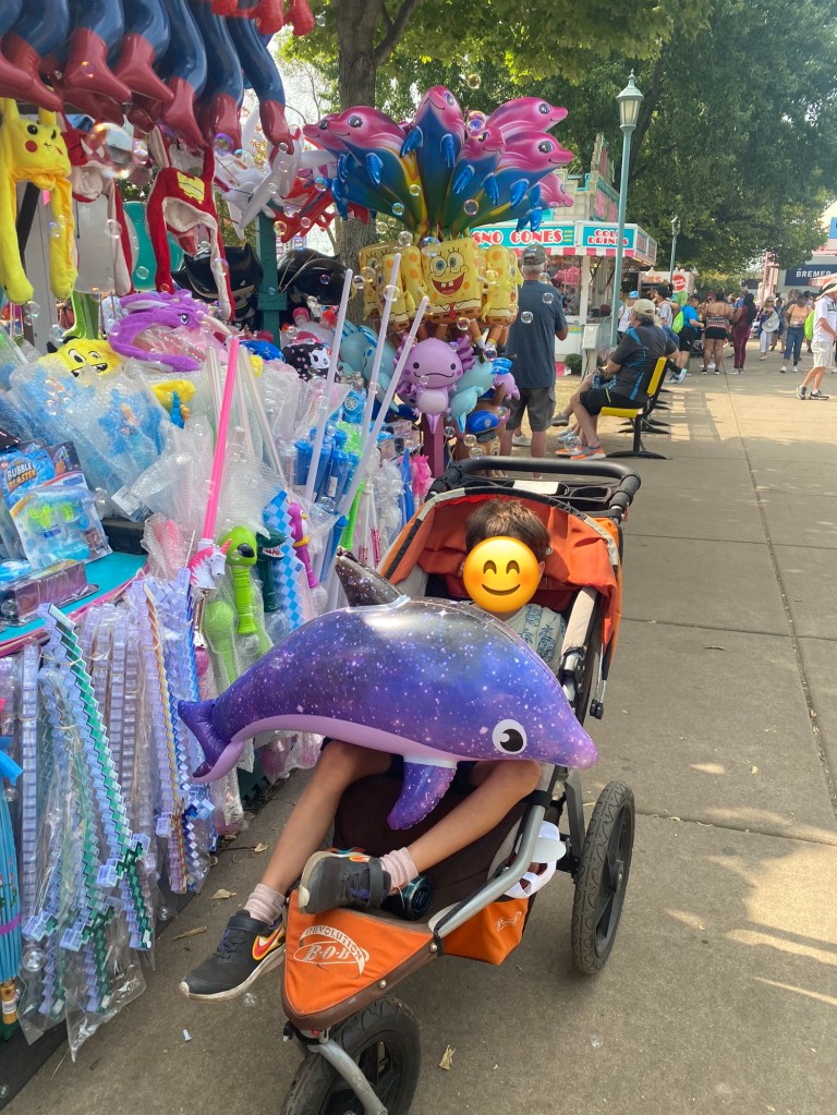 I set parameters for expectations on the way into the fair. One ride, one treat, and one prize, but when you get to be honorary grandma for the day, those parameters go out the window. The ride tickets are now loaded onto cards. B didn’t know it, but I loaded enough tickets for five or six rides.