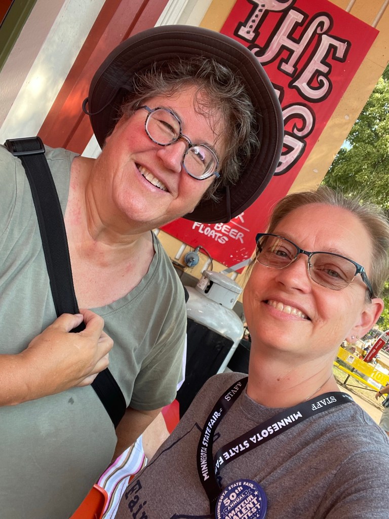 My coffee and oatmeal had gone cold this morning in all the hubbub, so I was in need of sustenance! I’ve never eaten at The Peg. Many people I know love it. We had coupons so we sat down at a lovely spot in partial shade and had time to catch up a little and fuel up. My friend Bree happened upon us too! It is unusual for us to go this many fair days without running into each other!
