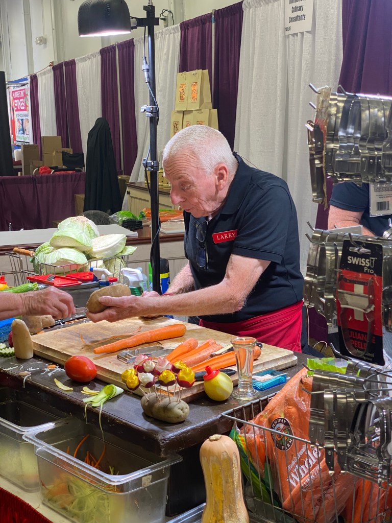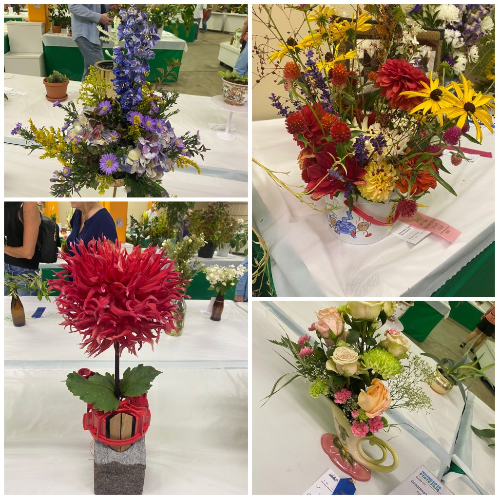 This was Nancy’s first and only state fair day, so it was her lead. Ag/Hort is a favorite, as she’s a very good gardener. There was much I hadn’t yet seen, so we wandered through. There are different types of flower shows every two days and this was the State Fair Flower Show. There were themes of “Grandmas Marathon”, “Hot Air Balloons”, “Parades” and others.