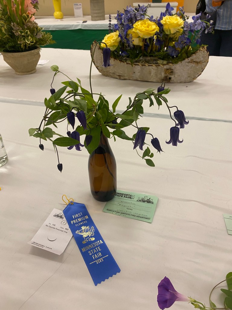This one caught my eye. Could I really just cut off a chunk of my Ragouchi Clematis and stick it in a beer bottle and win a blue ribbon?