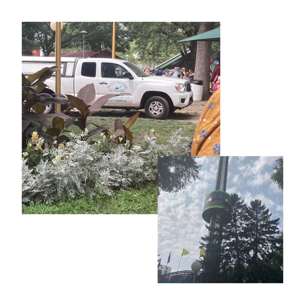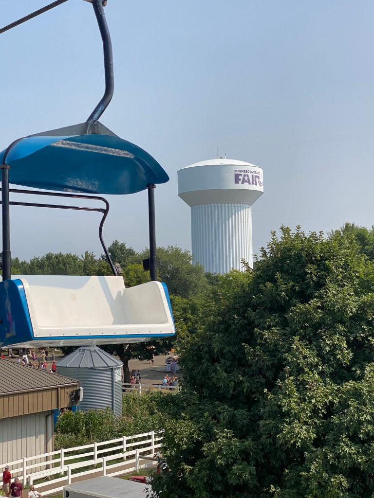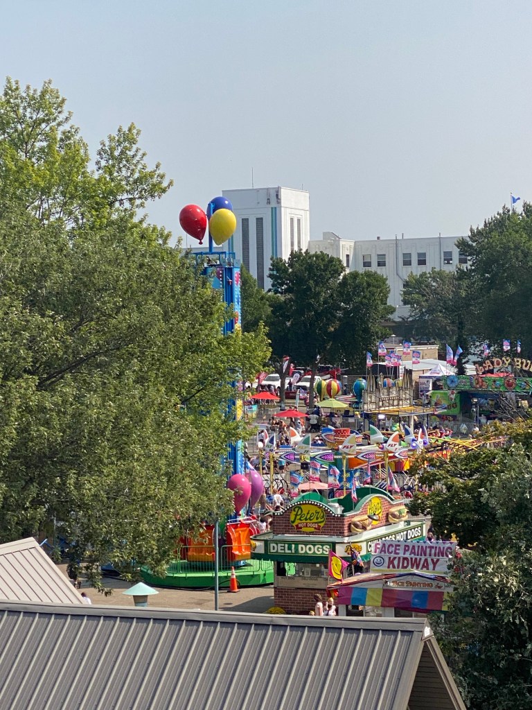 Seeing the Space Tower, Sara recounted the events from yesterday while they were waiting for the shortest parade to come by- and the Space Tower quit running! They had to bring out an elevator repair company and the news later reported that it’s closed for the duration of the fair while they wait for a special part. I did some research and the ride started malfunctioning Sunday and they got everybody down and off and closed the ride for maintenance. Monday was when the elevator company arrived and there were no passengers on board at this time. Despite the efforts to get it running better than ever for next year, this type of thing just reinforces my steadfast refusal of going on claustrophobic rides.