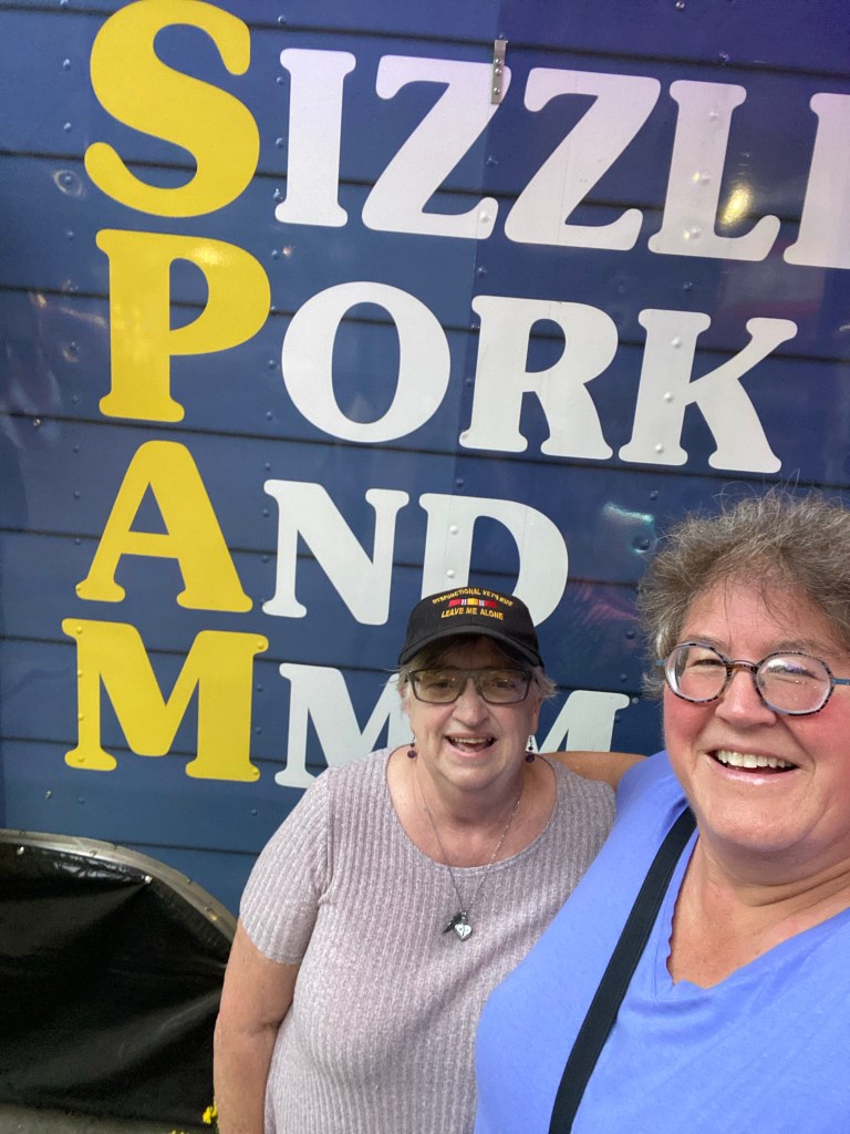 It was hot, so we moved slowly and I didn’t really have an agenda, and Sally had a couple things she’d missed on her other visits. We had to take the SPAM picture. They returned after last years hiatus. I am not a fan of the stuff, but Sally loves it!